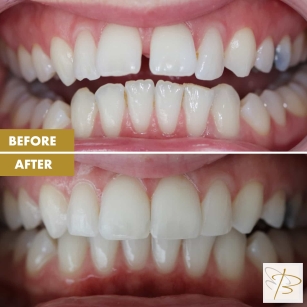 Quick Straight Teeth treatment uses discreet, tooth-coloured fixed braces to straighten your teeth quickly. These braces are designed to be nearly invisible when you smile, offering a fast and effective solution for achieving a straighter smile without the noticeable appearance of traditional metal braces.